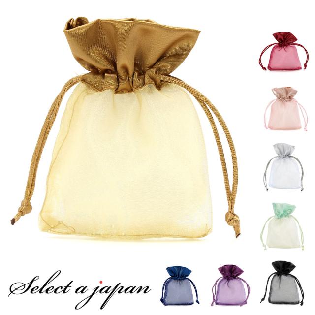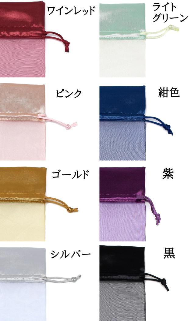 『10個』 巾着袋 (9cm×12cm) サテン×オーガンジー ラッピング 包装 巾着ポーチ 小物入れ ワインレッド ピンク ゴールド シルバー ライトグリーン レッド グリーン ネイビー パープル ブラック 紺色 紫 黒 マスク入れ マスクケース 持ち運び おしゃれ かわいい 折りたたみ