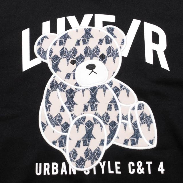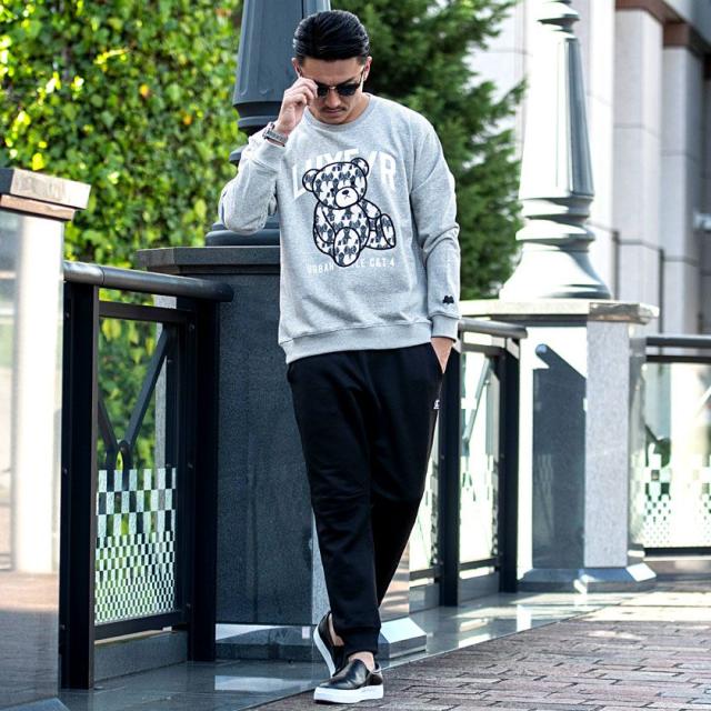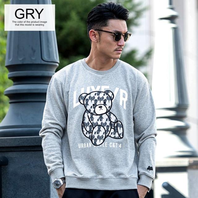 トレーナー メンズ スウェット スエット おしゃれ 裏毛 プリント ベア クマ 熊 細身 スリム タイト スタイリッシュ LUXE/R ラグジュ ブランド クルーネック ブラック グレー ホワイト 黒 白 M L XL ストリート ストリート系 カジュアル 春 秋 冬 男性 男 父の日 父の日ギフト 父の日プレゼント 20代 30代 40代 メンズファッション 東京 プレゼント 誕生日 記念日 贈り物 ギフト配送について