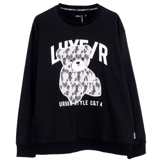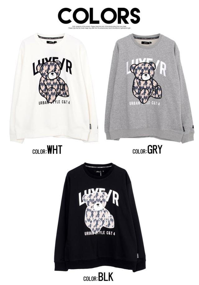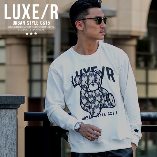 トレーナー メンズ スウェット スエット おしゃれ 裏毛 プルオーバー プリント ベア クマ 熊 LUXE/R ラグジュ ブランド クルーネック ブラック グレー ホワイト 黒 白 M L XL ユニセックス 男性 男 服 秋 冬 ファッション メンズファッション 即日発送 [45498]