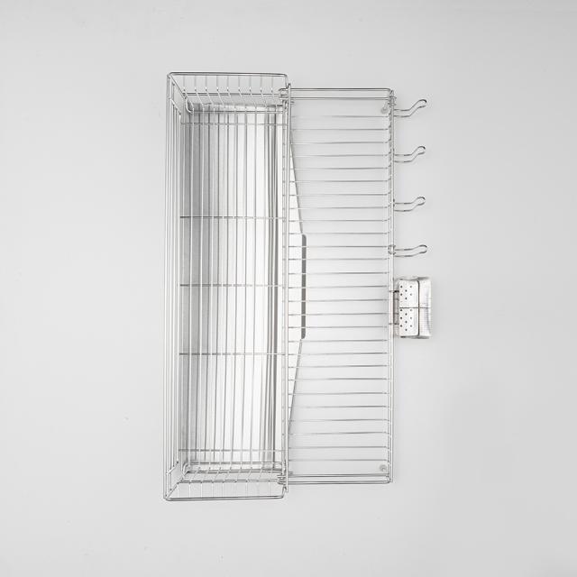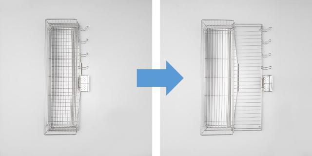 上のかごにお皿が乗った状態でも下のかごを引き出せる設計になっていてかごを閉じた状態で洗い物を始めても、食器の量が多ければ途中で伸ばすことができます。