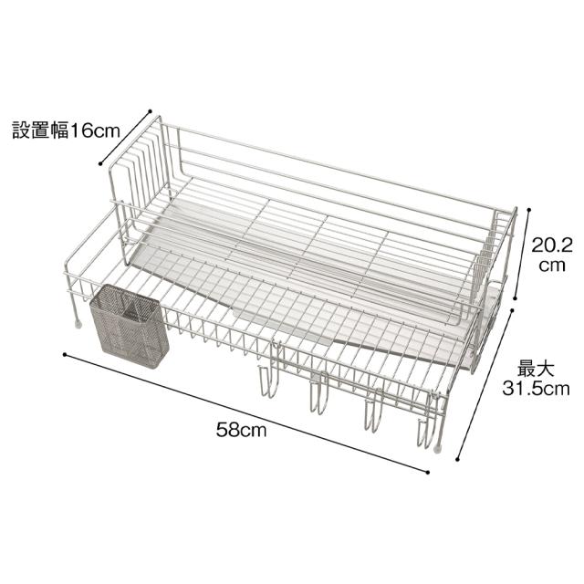 伸縮式の水切りで設置幅16cmととってもコンパクトなのに、広げると大容量に!