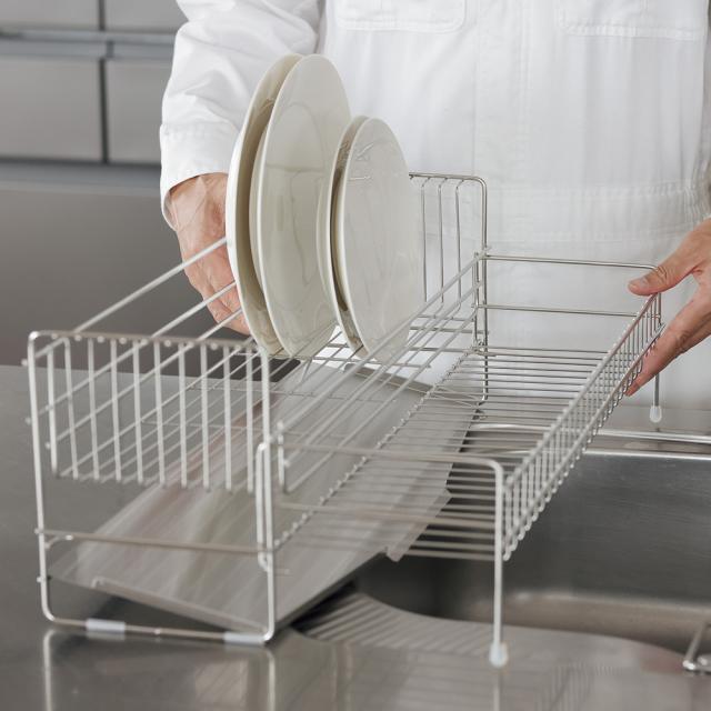 さらに、人が洗い物をするときの動きを考え、シンクで洗ったお皿はタテ向きに、お椀はヨコ向きに置いていく、というのがとてもスムーズで使いやすいんです。お椀を立てて乾かすことで、乾きが早いのもうれしいポイント。