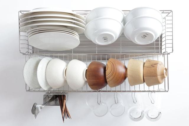 ワイヤーがそれぞれお皿やお椀を置きやすい向き・幅になっていて、食器を定位置に収納することができるんです。