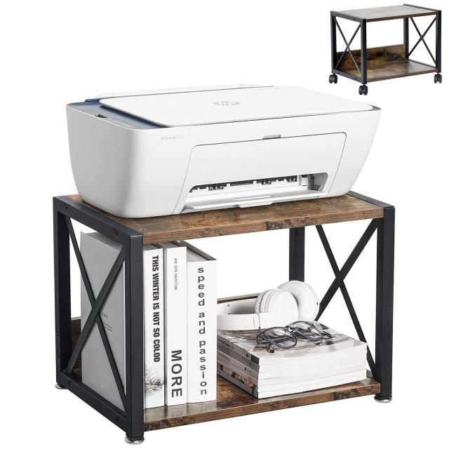 JIYUNII プリンター台 プリンターラック 木製 2段 プリンターワゴン 卓上収納 プリンター収納 机上&机下台 キャスター付き プリンタース