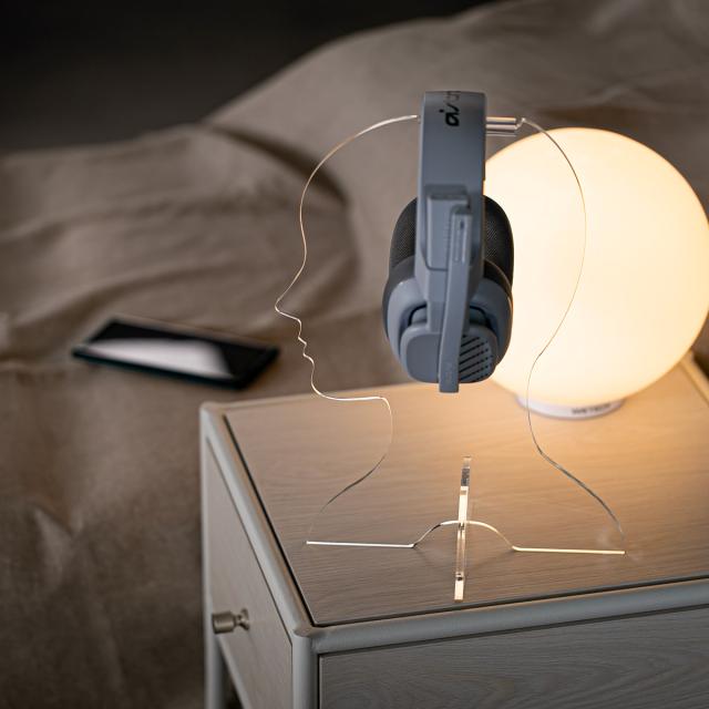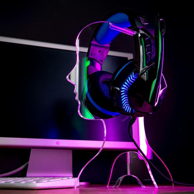 人の横顔を模したデザインは、置いておくだけでもインパクトのあるインテリアになります。パソコンやゲーミングディバイスなどの近くに置けば、光を透過、反射させ、より幻想的な雰囲気を作り出します。ヘッドフォンを収納しながら一味違うインテリアとして楽しむことができる、大胆なデザインのヘッドフォンスタンドです。