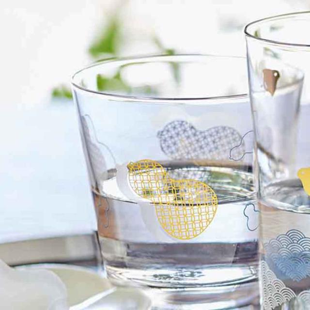 日本で親しまれている吉祥文様をあしらったグラス