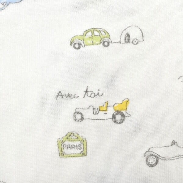 お色は女の子らしい繊細な花柄のピンク系、男の子らしいクルマ柄のブルー系、男の子にも女の子にもピッタリなルダクティオンのクマさんの総柄プリントのベージュ系3色です。