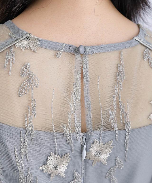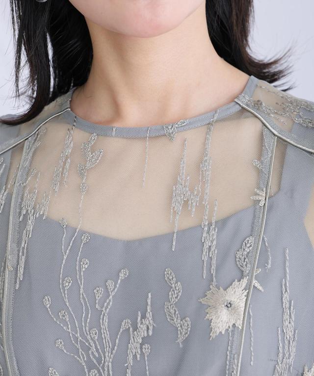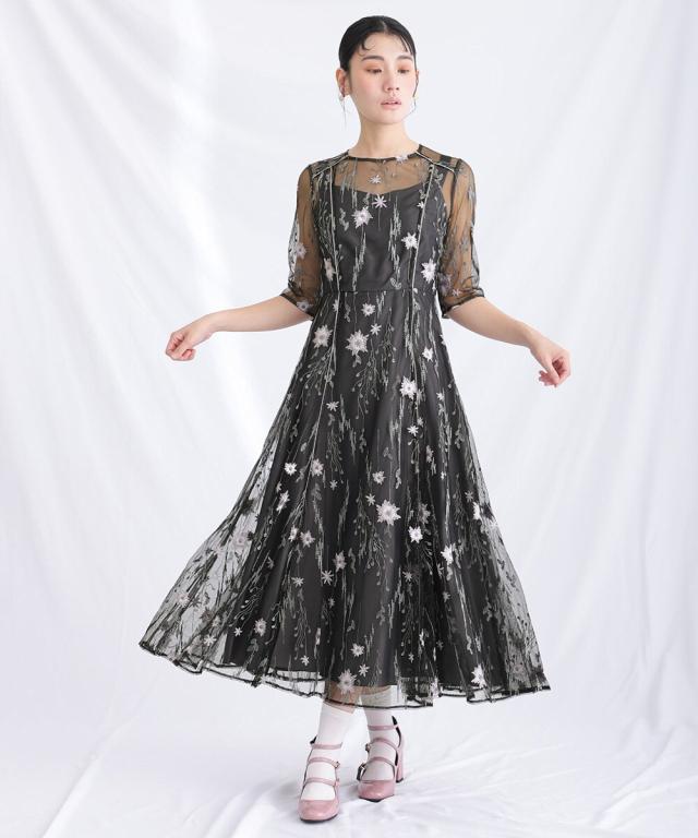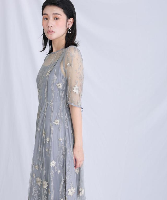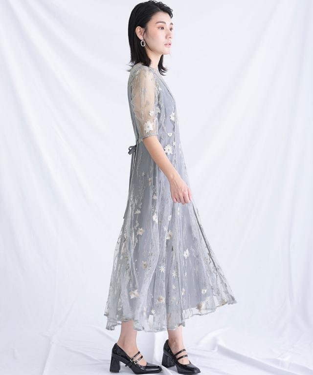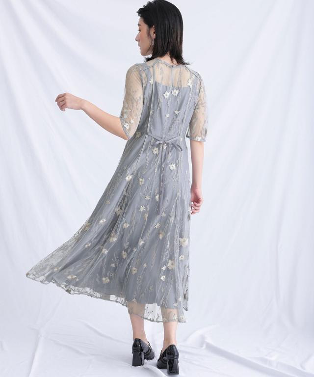 ヴィンテージ風のフラワー刺繍がフェミニンな印象を漂わせる1着。