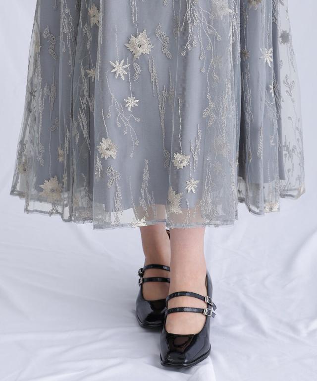 歩く度にチュール素材のスカートがふんわりと揺れ、華やかな印象に。
