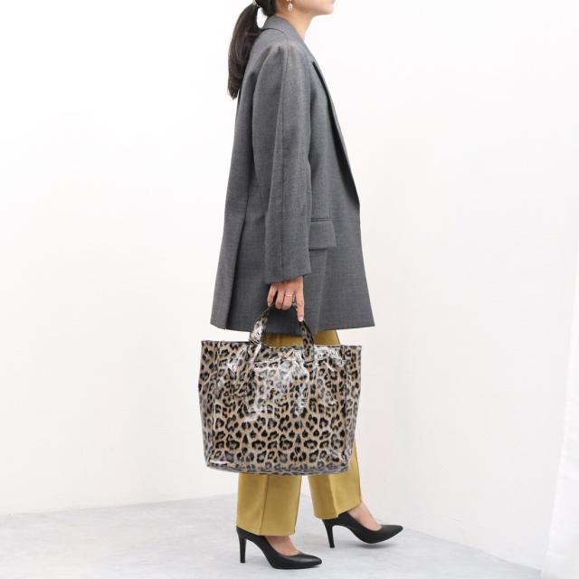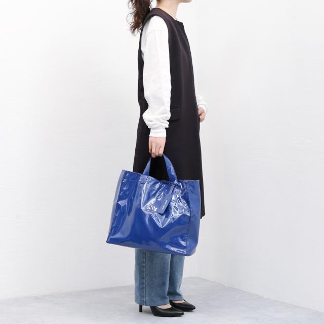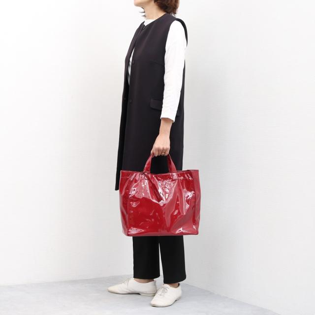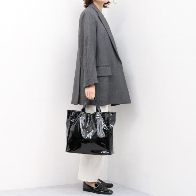 衣料用の高級感のあるソフトエナメルを使ったスクエアトートバッグ。