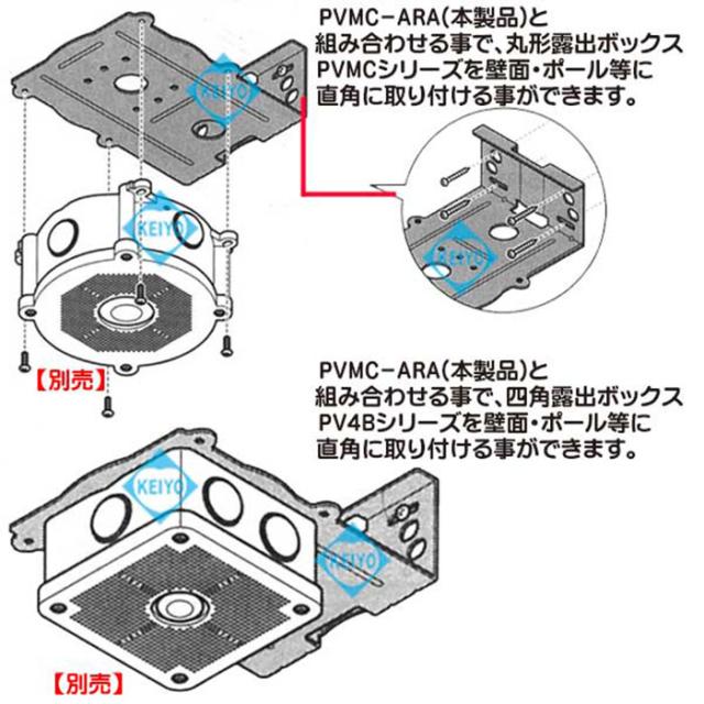 PVMC-ARA【パワーバンド取付対応露出用取付自在フタボックス壁面取付直角サポート金具】【未来工業】 【防犯カメラ】