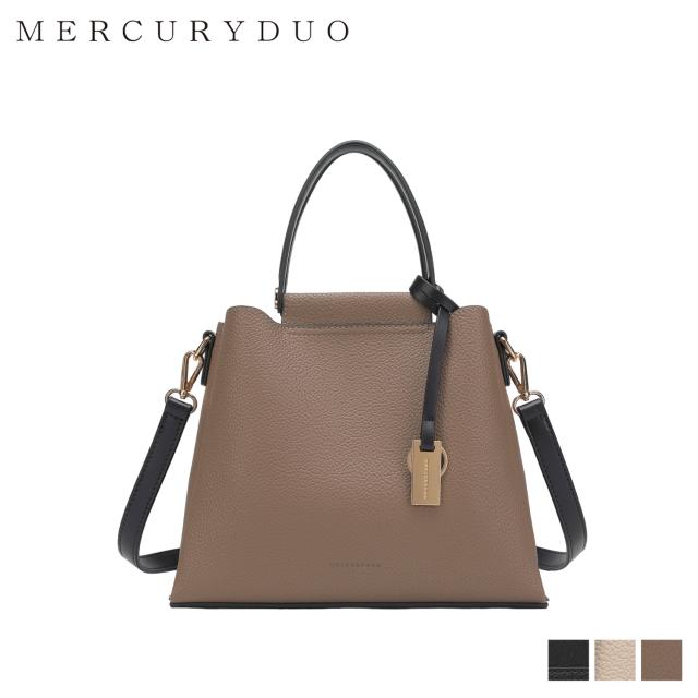 シンプルデザインに、MERCURYDUOのロゴチャームがポイントの高見えする上品なハンドバッグです。あおりポケットの付いた三層式になっており、メイン収納はファスナー式になっているので、貴重品の仕分け管理がしやすく安心なうえ、程よいマチで見た目もスッキリと収まります。機能的なショルダースタイル、流行りの手持ちスタイル、服装やシーンに合わせ使い分けできる2way仕様。