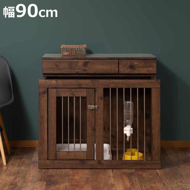 ペットケージ 幅90cm キャビネット ヴィンテージ調 Arizona ( アリゾナ ペット家具 ケージ 家具 収納 引き出し 収納ラック 鍵付 ペット用品 ペットベッド 背面化粧 拡張 )