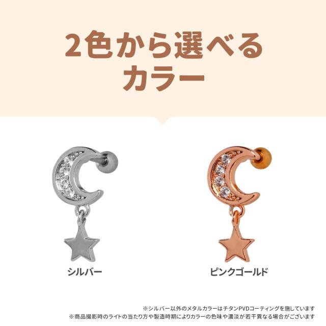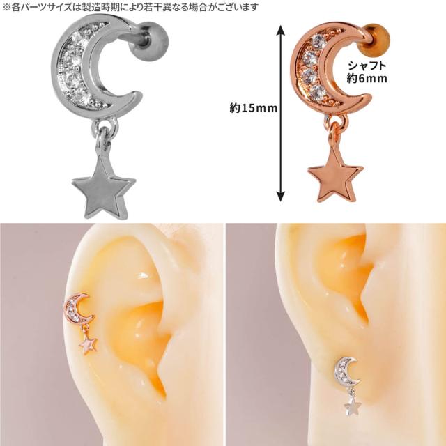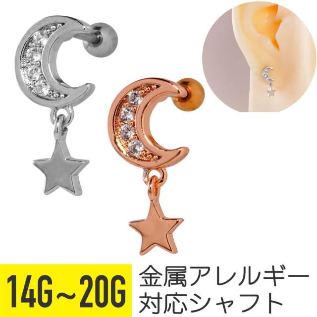 ムーン ジュエル スター チャーム ストレートバーベル 14G 16G 18G 20G サージカルステンレス ヘリックス 軟骨ピアス ボディピアス 星 月