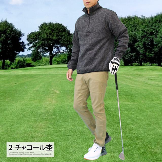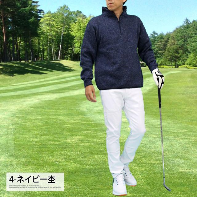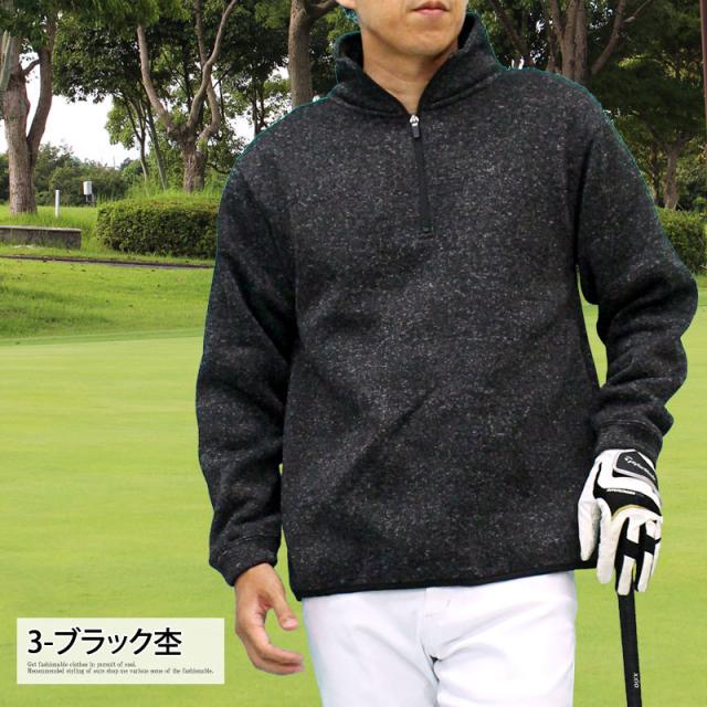 送料無料 ゴルフ ハーフジップトレーナー メンズ ゴルフウェア 暖かい 裏起毛 ニットフリース セーター トップス ハイネック プルオーバー スタンドネック 秋冬