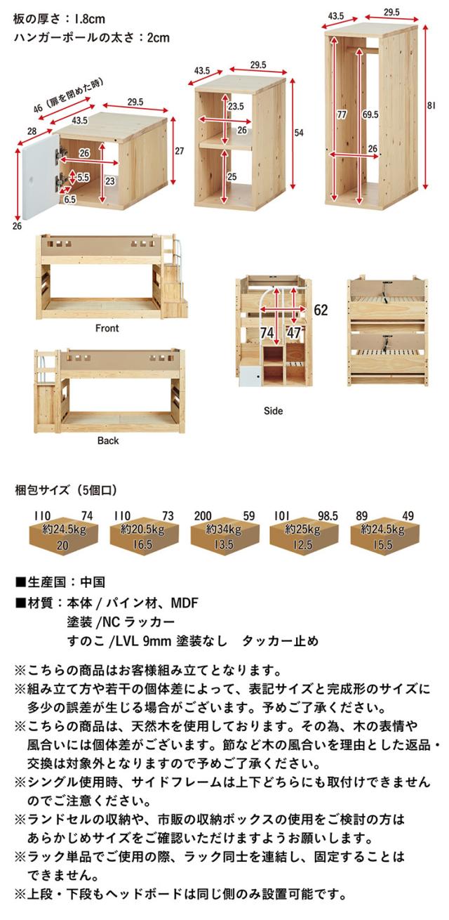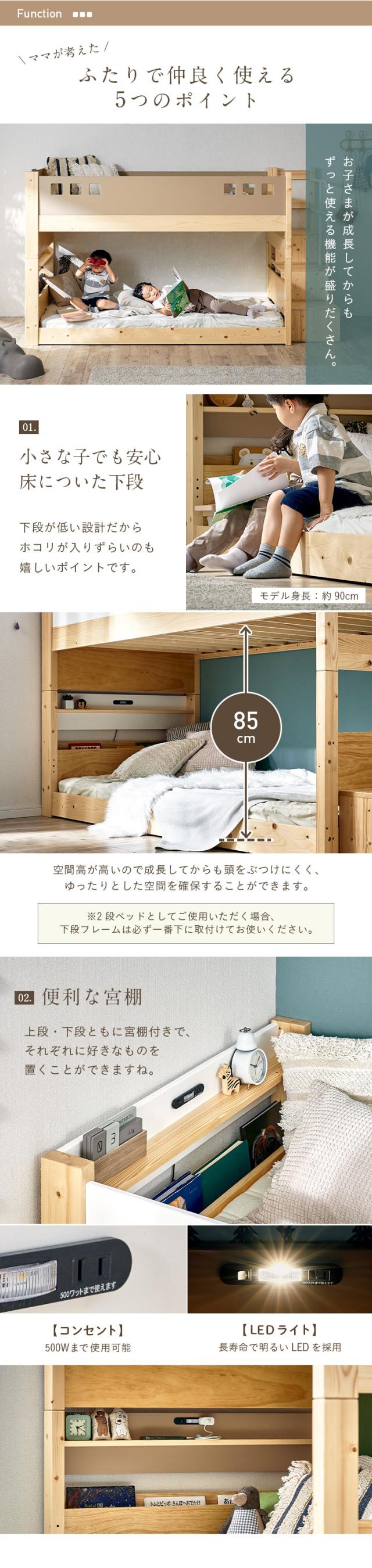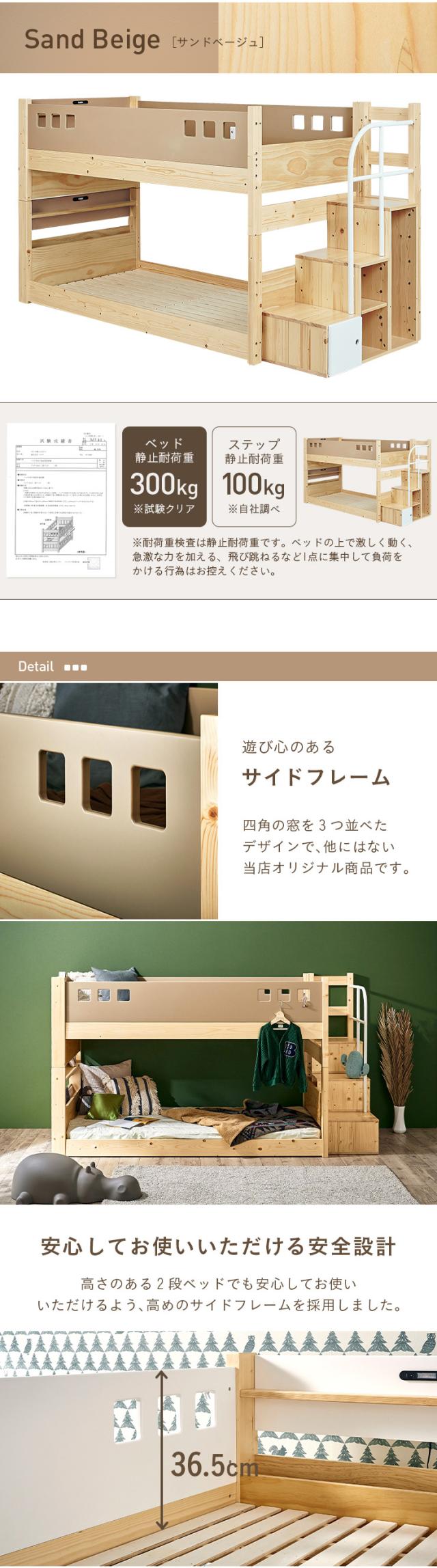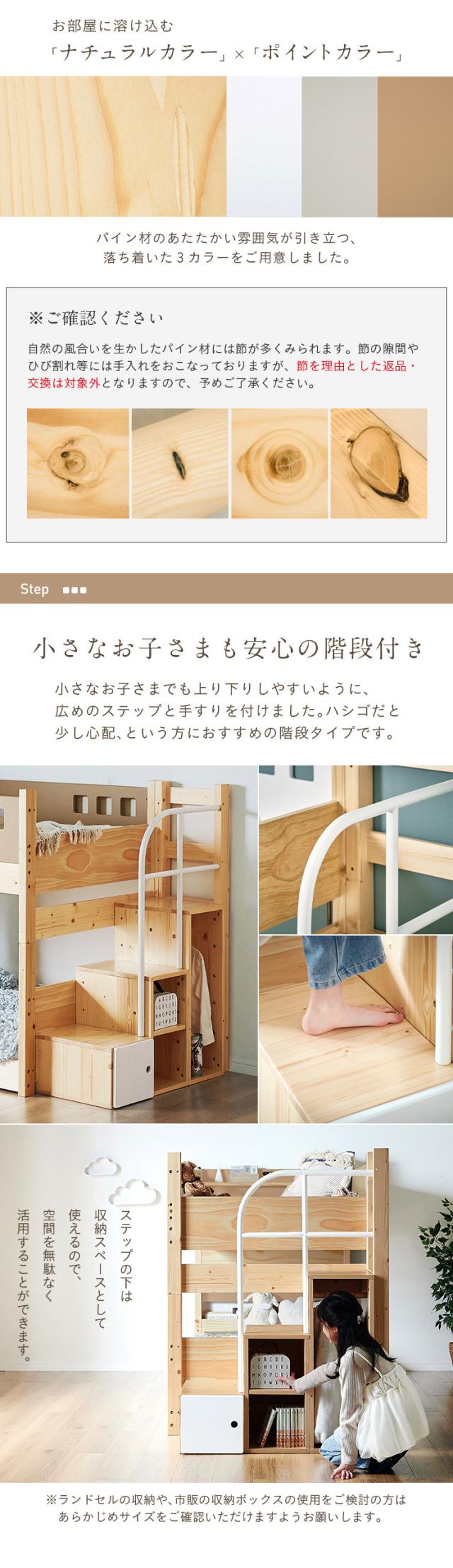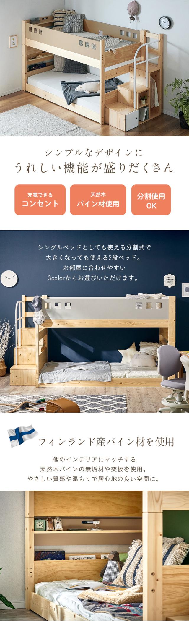 二段ベッド 2段ベッド 階段付き 宮棚付き ロータイプ 分離可能 分割 子供 大人用 コンセント シングルベッド 二段ベット 2段ベット すのこベッド 子供部屋 耐荷重300kg atte step2(アッテステップ2) 3色対応