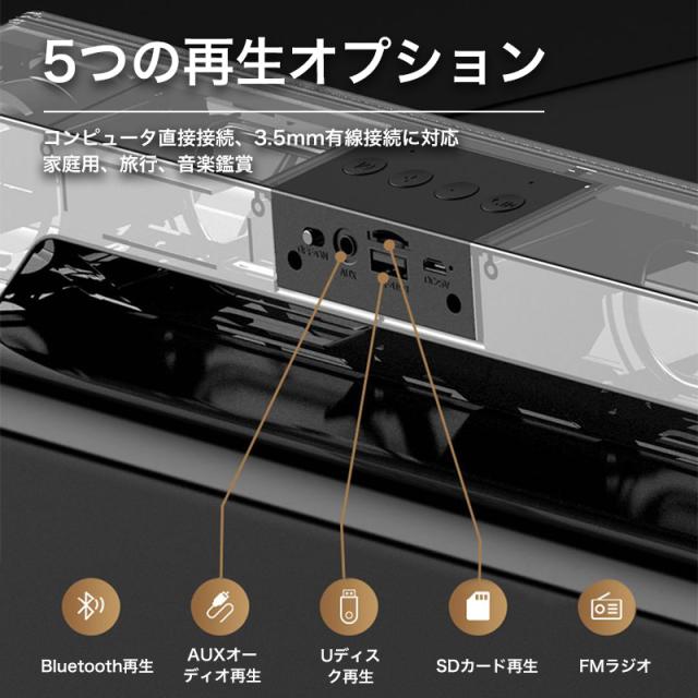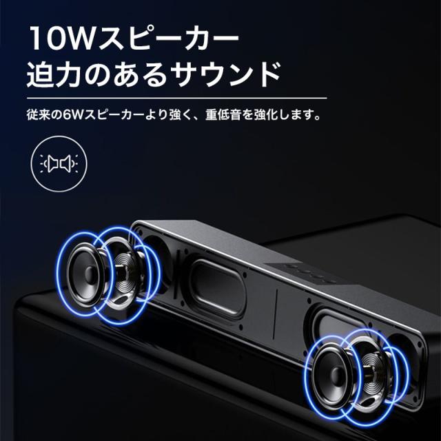 Bluetoothスピーカー サウンドバー テレビ スピーカー テレビスピーカー Bluetooth 高音質 サウンドスピーカー PC クリア 重低音 臨場感 10W出力 ブラック