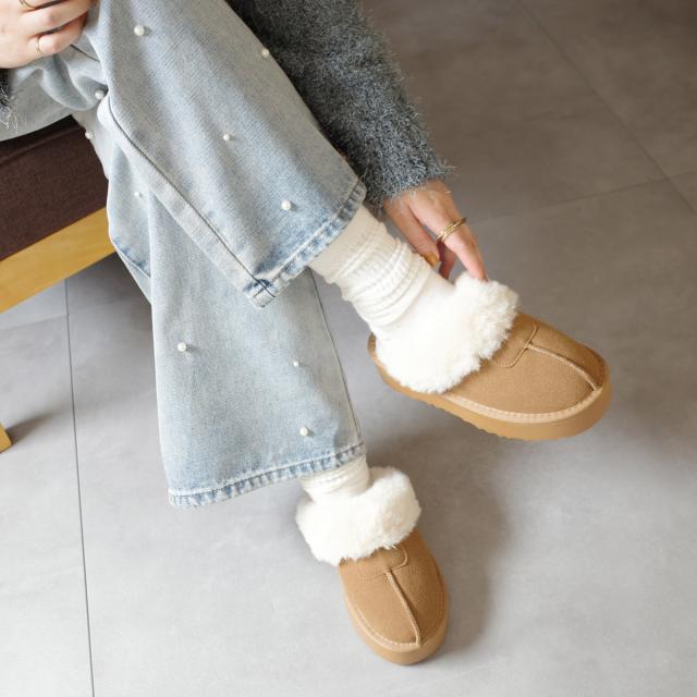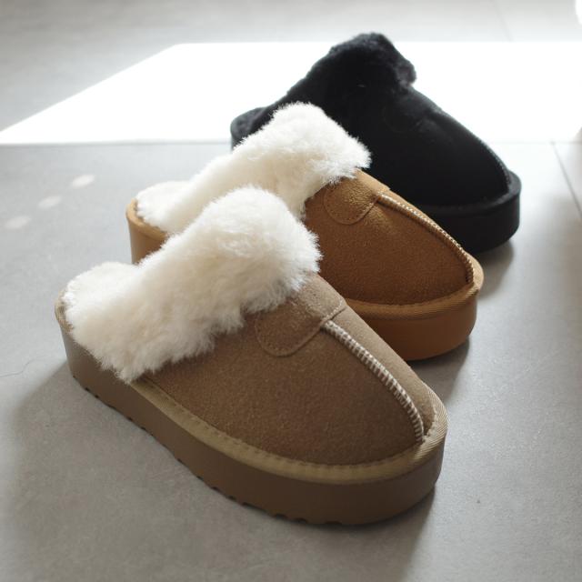 厚底4cmソールふわふわの内側全面ファーで足元あったか。