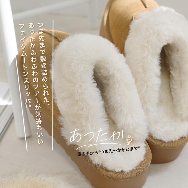 シューズ あったか ふわふわ 厚底ムートンスリッパ 4センチヒール 寒さ対策 レディース 内側全面ファー 履きやすい ブラック キャメル 22.5 24.5 防寒 快適 歩きやすい フラット カジュアル CN406 アミアミ あみあみ amiami