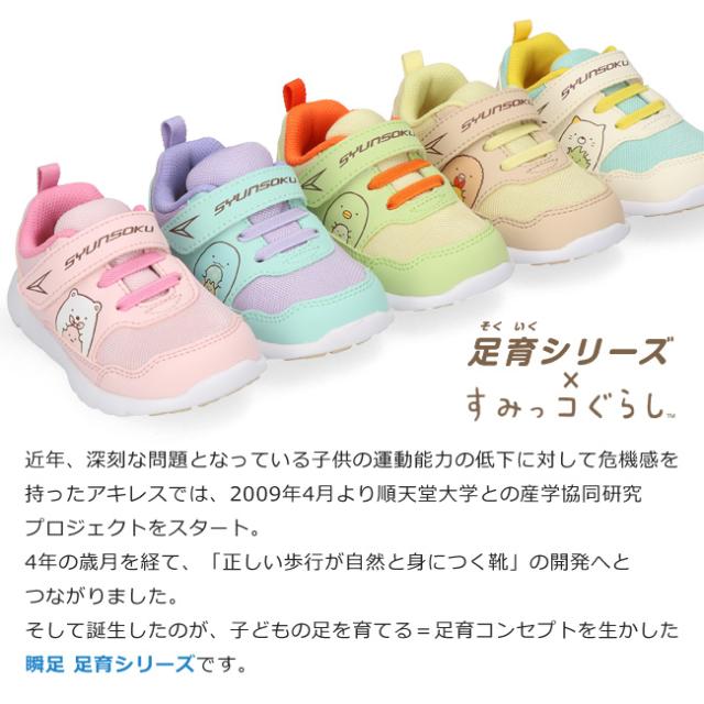 瞬足 足育 すみっコぐらし スニーカー キッズ ジュニア 幼児 女の子 男の子 軽量 幅広 歩きやすい かわいい アキレス C-256 シューズ 靴