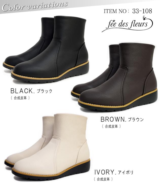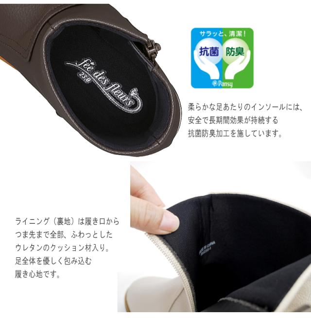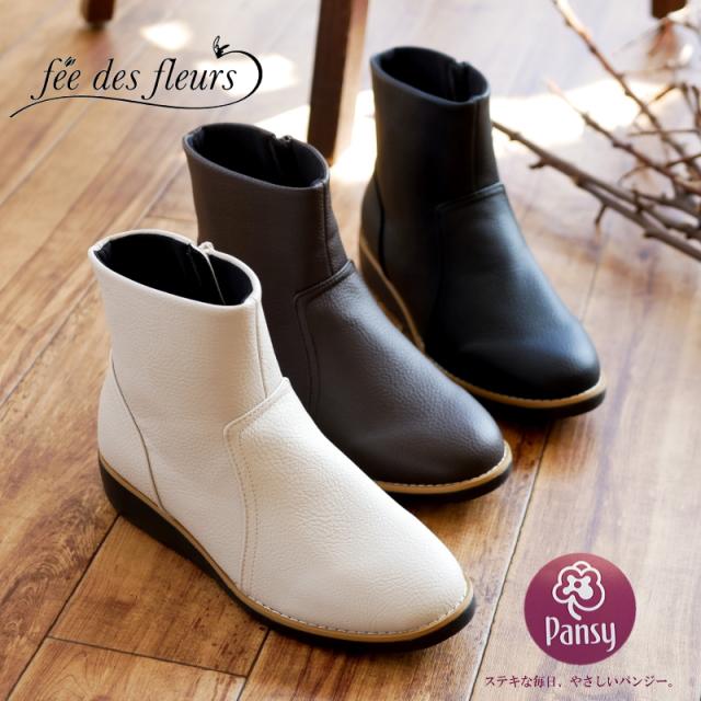 パンジー Pansy ショートブーツ レディース サイドファスナー 抗菌 防臭 軽量 ウエッジソール ラウンドトゥ 屈曲 柔らかい 歩きやすい 履きやすい 旅行 お洒落 3e