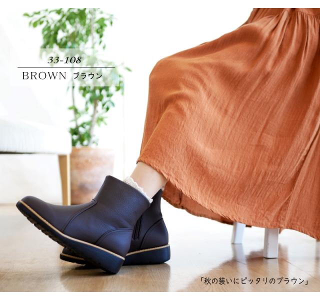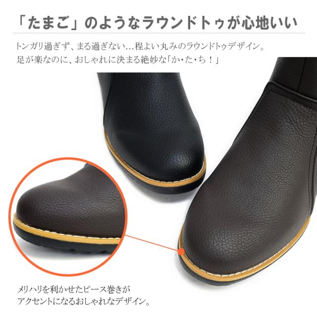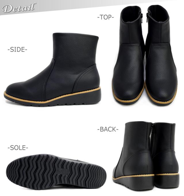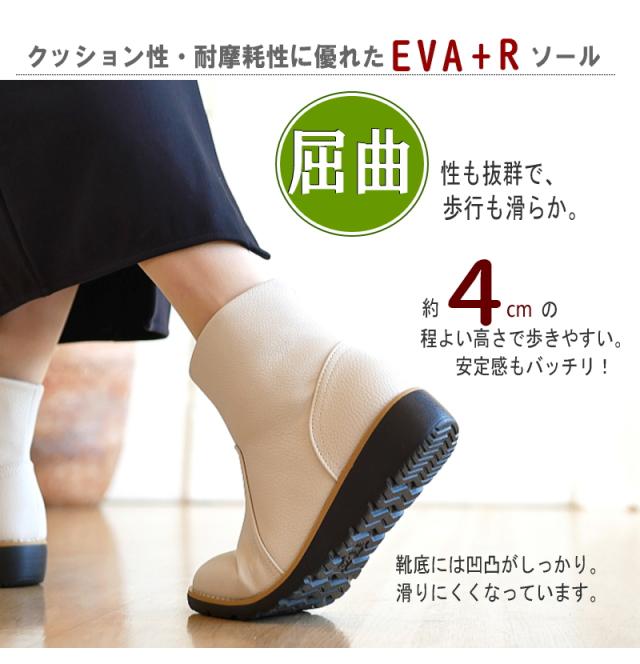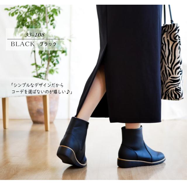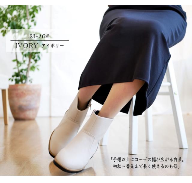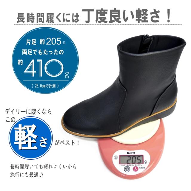 送料無料 ブーツ カジュアルブーツ 軽い スライドファスナー シンプル プレーン 3E ピース巻き 大人女子 らくちん 痛くない お出かけ 耐摩耗性 クッション性