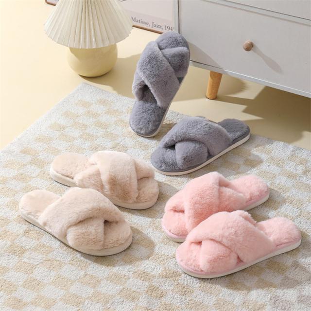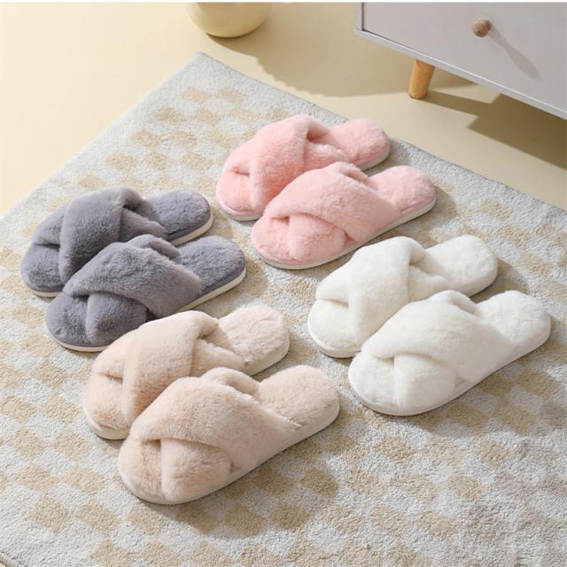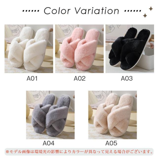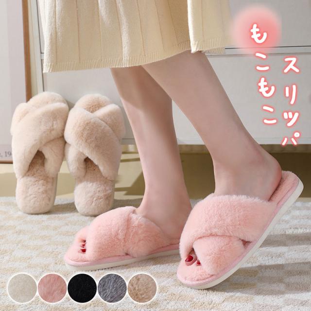 スリッパ おしゃれ ルームシューズ 来客用 可愛い かわいい 暖かい ふわふわ もこもこ 秋用 冬用 クロス型 冬用 室内 滑り止