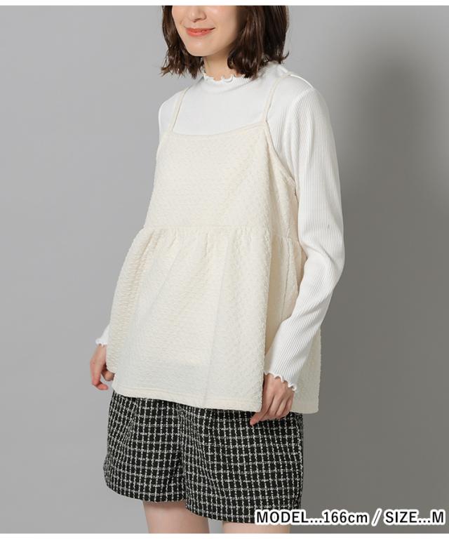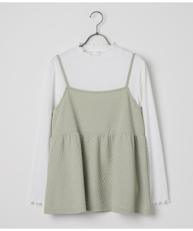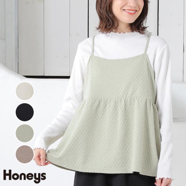 トップス カットソー レイヤード キャミソール 長袖 セット かわいい フリル SALE Honeys ハニーズ キャミ付トップス