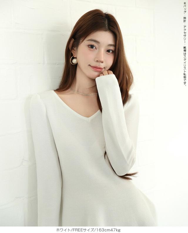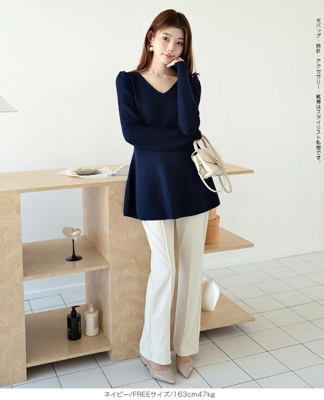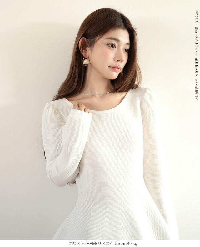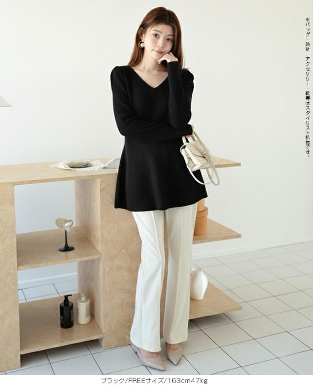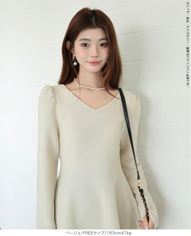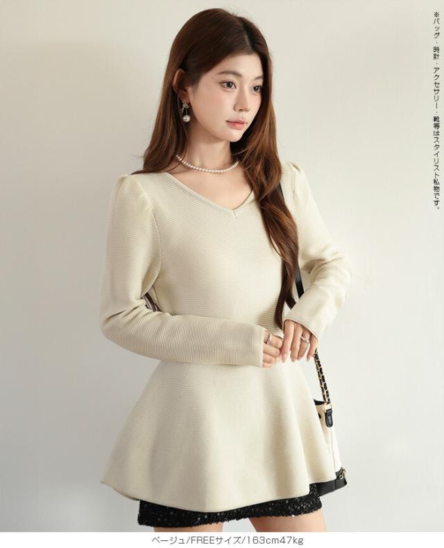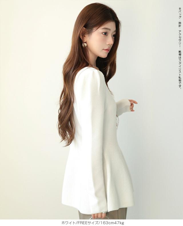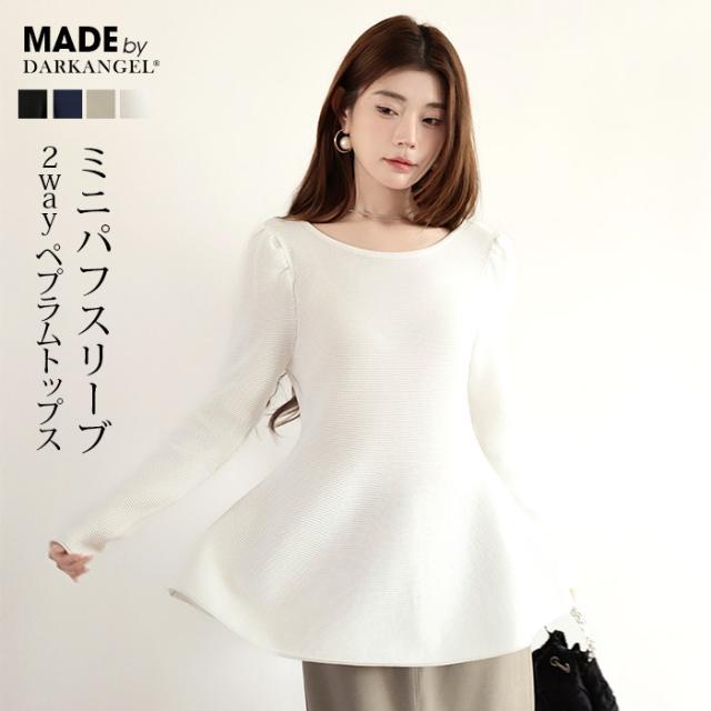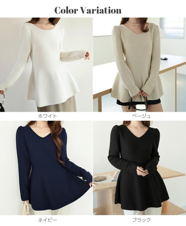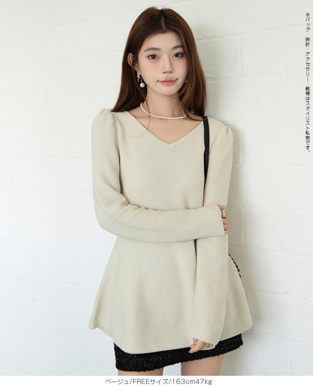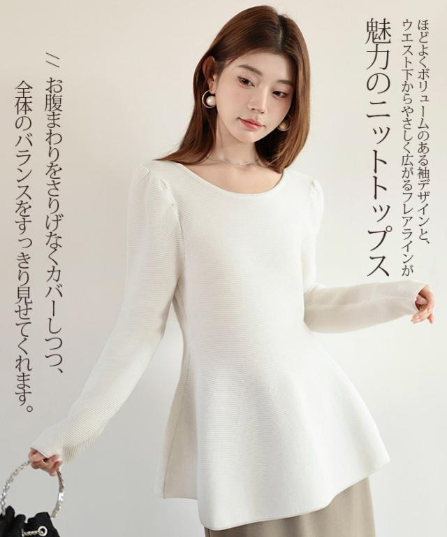 【ミニパフスリーブ2wayペプラムトップス 】 ふんわりと広がるフレアラインが魅力の、 2way仕様ペプラムニットトップス。 前後どちらでも着られるデザインで、 Vネックとラウンドネックを 気分やシーンに合わせて楽しめます。 程よくボリュームのあるパフスリーブが、 女性らしさをプラスしつつ二の腕を自然にカバー。 ウエスト下から広がるシルエットで、 体型を拾わずスタイルアップ効果も◎ きれいめにもカジュアルにも着回せる万能さで、 デイリーはもちろん、 入学式・卒業式などのオケージョンシーンにもおすすめです。 《商品ポイント》 前後2way仕様でネックラインをアレンジ可能 Vネック/ラウンドネックの2パターン着用 ペプラムシルエットで体型カバー ミニパフスリーブで二の腕すっきり 1枚でコーデが華やぐ主役トップス きれいめにもカジュアルにも対応 オンオフ兼用デザイン オケージョンにも使える上品感 《デザイン・シルエット》 ウエスト下から自然に広がるフレアライン コンパクトすぎず程よくゆとりのある身幅 肩まわりに丸みを持たせたパフスリーブ 前後差のないすっきり丈感 女性らしさときれいめ感を両立したシルエット 《コーディネート提案》 テーパードパンツやスラックスと合わせて通勤スタイルに フレアスカートと合わせてフェミニンコーデ デニムと合わせてきれいめカジュアルに ジャケットのインナーにしてセレモニー仕様に アクセやパンプスを合わせてオケージョン対応も◎ 《サイズ・カラーバリエーション》 サイズ:FREE (程よくゆとりのあるフリーサイズ設計) カラー展開例 ・ホワイト ・ブラック ・ベージュ ・ネイビー ※淡色はやや透け感がございます。 《素材・機能性》 素材:ポリエステル混ニット さらっとした肌触りでロングシーズン対応 程よい厚みで春・秋に最適 伸縮性ありで着心地ラク シワになりにくくお手入れ簡単 軽量で長時間着用もストレスフリー" |