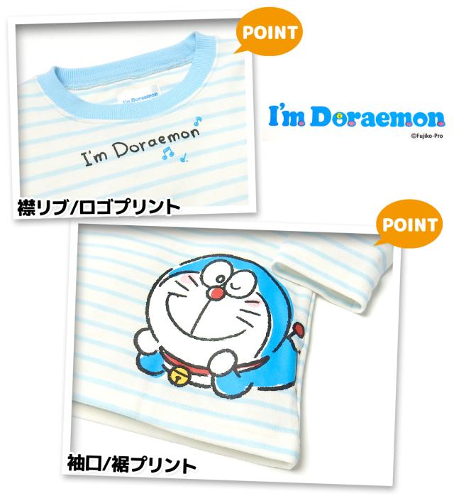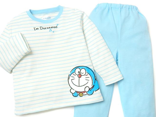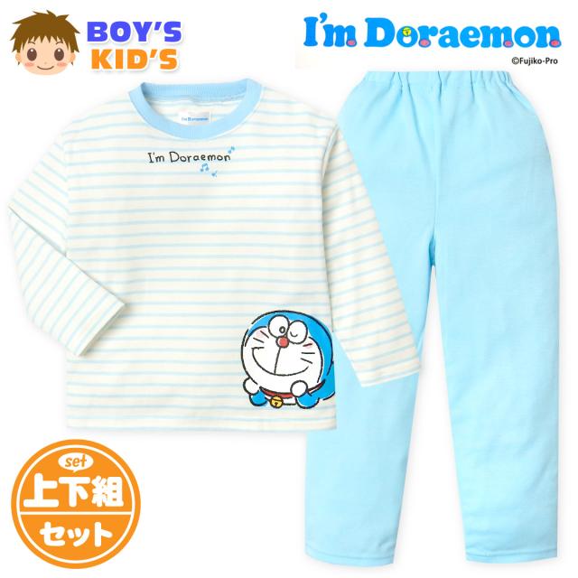 【送料無料】男児 キッズ ダンボールニット 長袖 パジャマ ドラえもん 上下組 ボーダー柄 子供服 男の子 iw-0919a-iv【メール便対応】