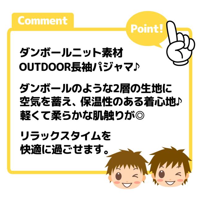 【送料無料】男児 キッズ ジュニア 長袖 パジャマ OUTDOOR 上下組 ダンボールニット 子供服 男の子 iw-0920b-kk【メール便対応】