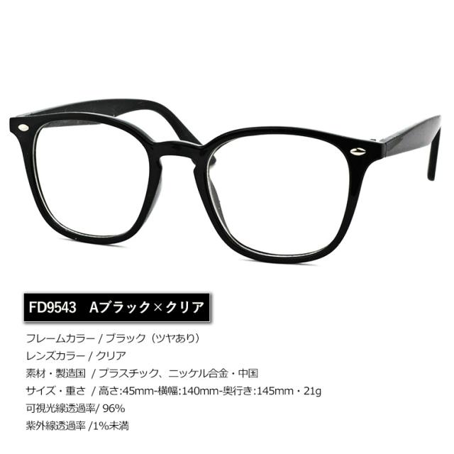伊達メガネ FD9543 UVカット 大きい スクエア ウェリントン