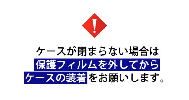※ ケースが閉まらない場合は、保護フィルムを外してからケースの装着をお願いいたします。