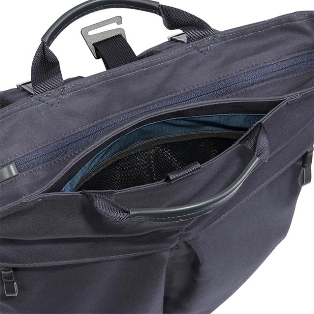 背面側にはPCポケットを用意。ビジネス、カジュアルどちらでも使い勝手がよく仕上がっています。