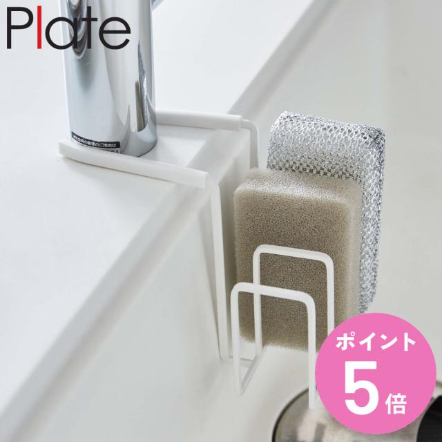 山崎実業 Plate 蛇口にかけるスポンジホルダー 3連 プレート ( プレートシリーズ スポンジホルダー スポンジ置き 引っ掛け スポンジ入れ スポンジ収納 タワシホルダー タワシラック たわしホルダー スポンジラック ホワイト 白 )