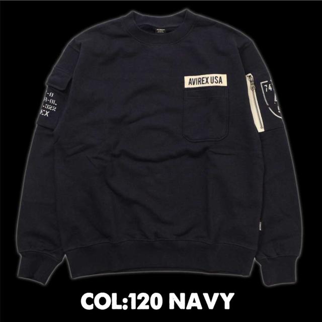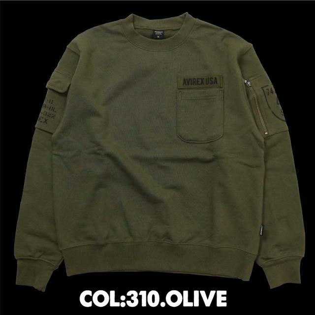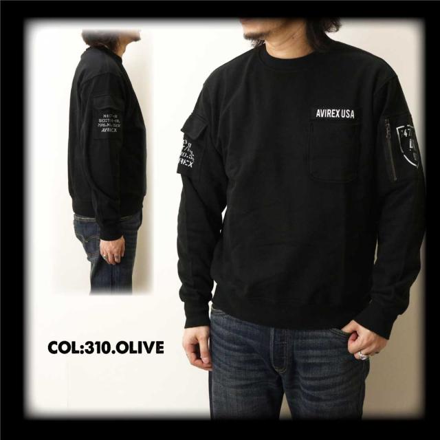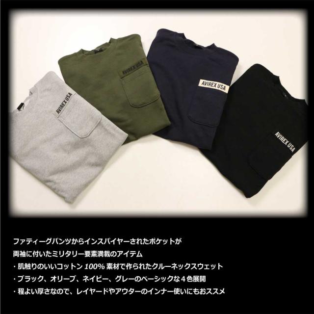 AVIREX アヴィレックス アビレックス 長袖 スウェット トレーナー 783-3932004 ファティーグ クルーネック スウェット ミリタリー メンズ