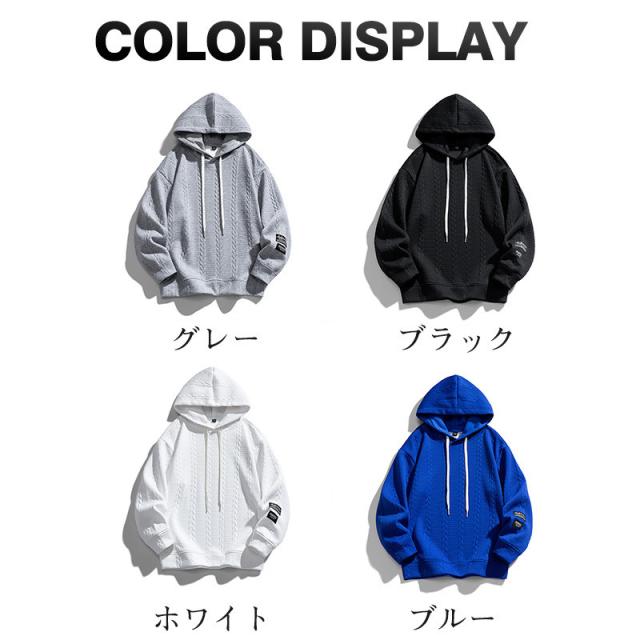 パーカー メンズ プルオーバー レディース トップス スウェット フード付き 長袖 無地 ゆったり 防寒 カジュアル ケーブル 春