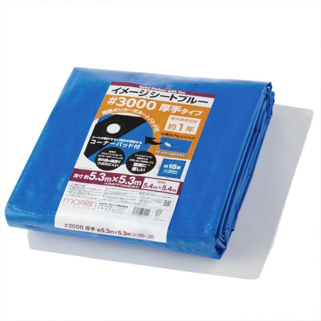 モリリン ブルーシート イメージシートブルー #3000 厚手 5.4×5.4m ポリカーボネートハトメ 使用目安約1年 1枚入