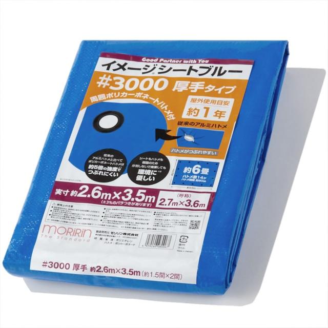 モリリン ブルーシート イメージシートブルー #3000 厚手 2.7×3.6m ポリカーボネートハトメ 使用目安約1年 1枚入