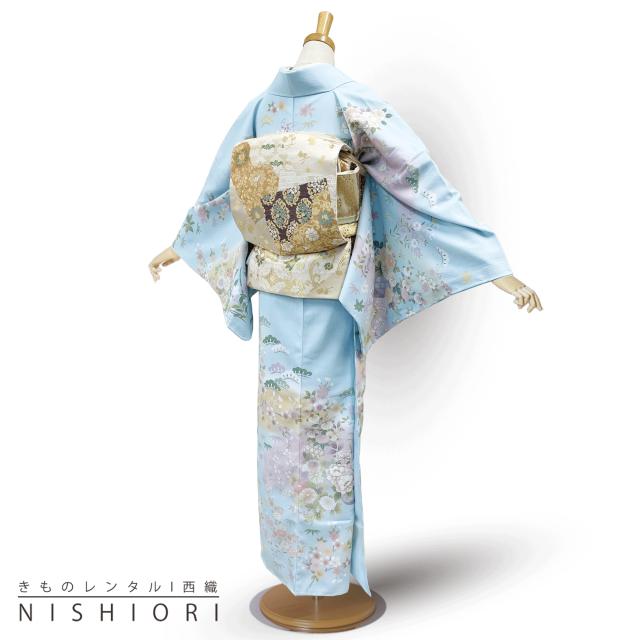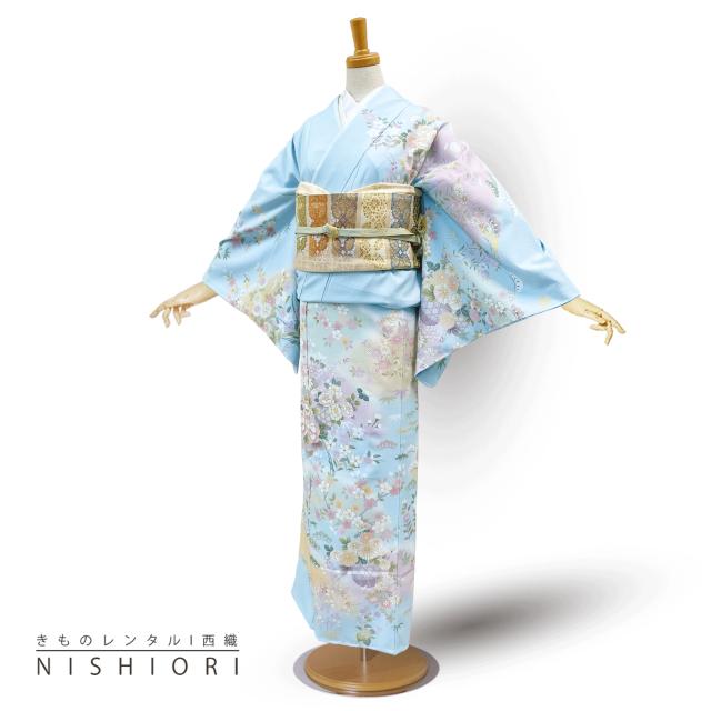 訪問着 レンタル 着物レンタル 貸衣装 フルセット 入学式 卒業式 七五三 結婚式 お宮参り 結納 お茶会 パーティー 母親 ママ 人気 訪問着レンタル 付下げ 【トールサイズ】 水色 No.0273