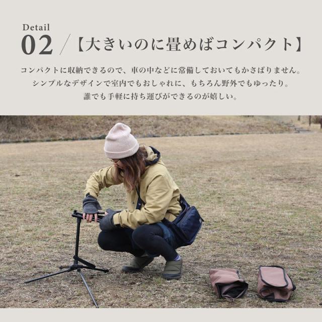 コンパクトに収納できるので、車の中などに常備しておいてもかさばりません。シンプルなデザインで室内でもおしゃれに、もちろん野外でもゆったり。誰でも手軽に持ち運びができるのが嬉しい。
