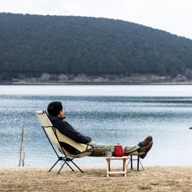 フレームは軽量アルミで座面が深く、ハンモックのように体にフィット。ゆったりと包み込まれる座り心地。