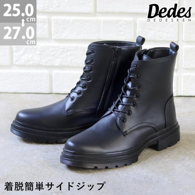 メンズ レースアップブーツ 3E 歩きやすい タンクソール 3cmヒール No.6355 25.0-27.0cm 黒 Dedes デデス