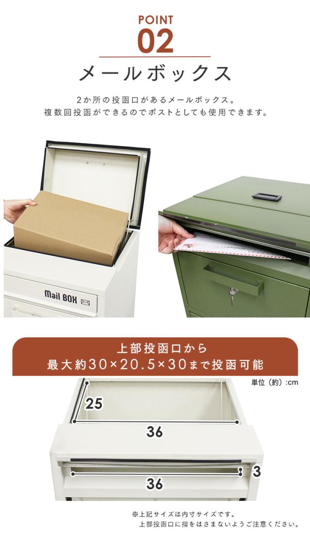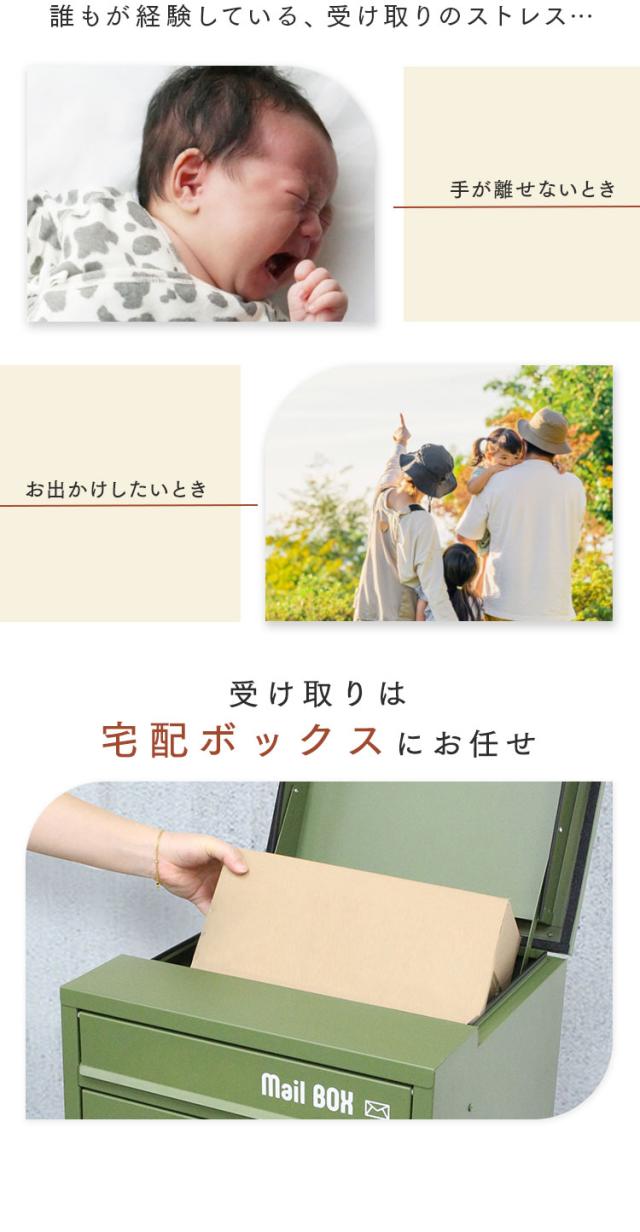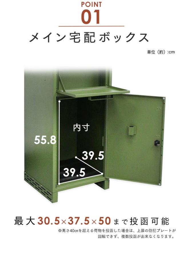 上部に郵便ポストも付いている多機能宅配ボックスです。配達時間を待ったり、面倒な再配達指定もしなくてOK!上段の郵便物取り出し口、下段の宅配ボックス共に鍵付なので防犯面も安心!