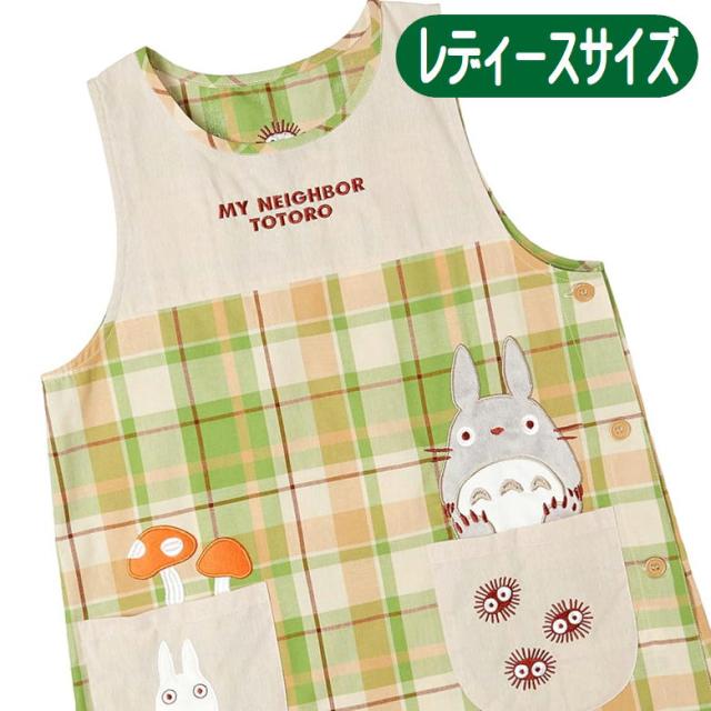 となりのトトロ エプロン トトロたちときのこ ラン型 ジブリ キャラクター グッズ サイドボタン アップリケ かっぽう着 丸眞