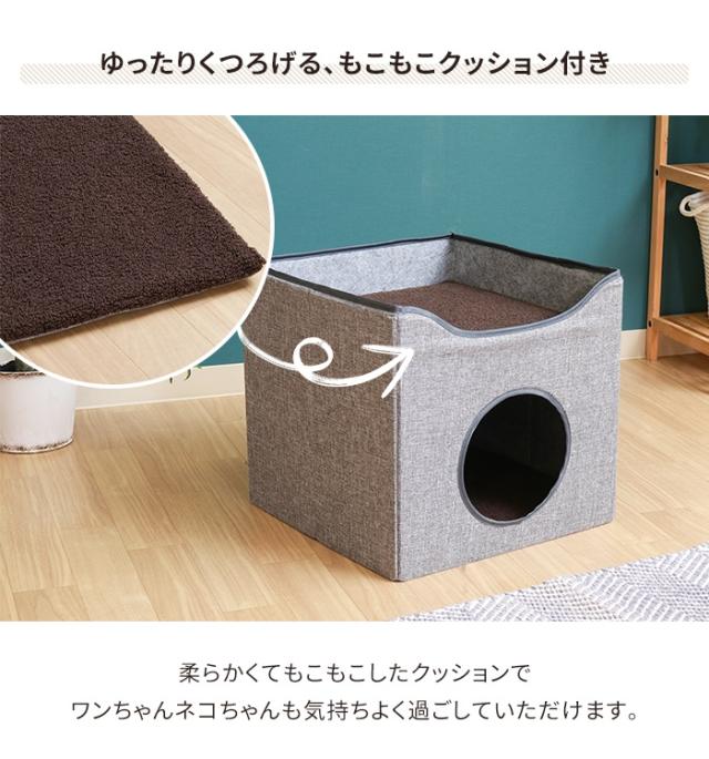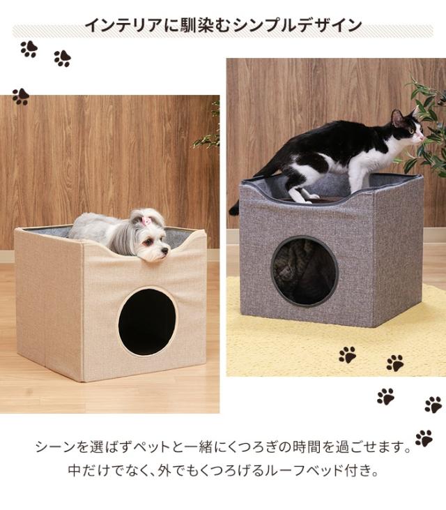 | インテリアに馴染むシンプルデザインのペットハウス。 中だけでなく、外でもくつろげるルーフベッド付き。 柔らかくてモコモコしたクッションでワンちゃんもネコちゃんも気持ちよく過ごしていただけます。 |