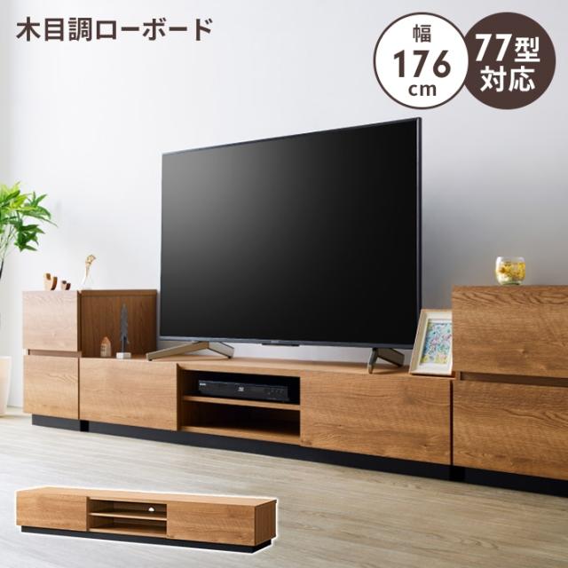 【値下げ】ローボード 幅176 テレビ台 テレビボード TV台 〜77V 大容量 収納 棚付き 木目調 ナチュラル おしゃれ シンプル 上品