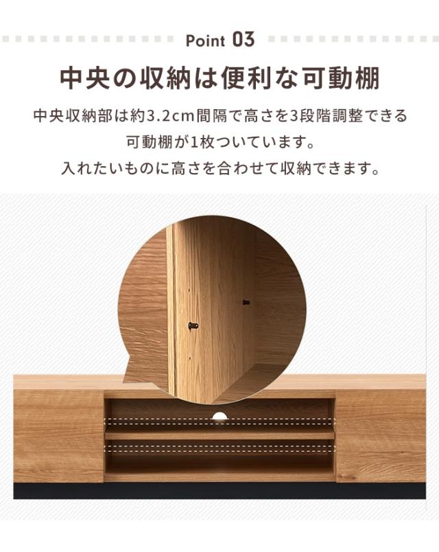 キーワード:ローボード 幅176 テレビ台 テレビボード TV台 〜77V 大容量 収納 棚付き 木目調 ナチュラル おしゃれ シンプル 上品 TVボード 木製 扉付き テレビラック 収納棚 AVボード AVラック ロータイプ 77型 北欧風 収納家具 リビング家具 おしゃれ家具 インテリア コード穴 便利