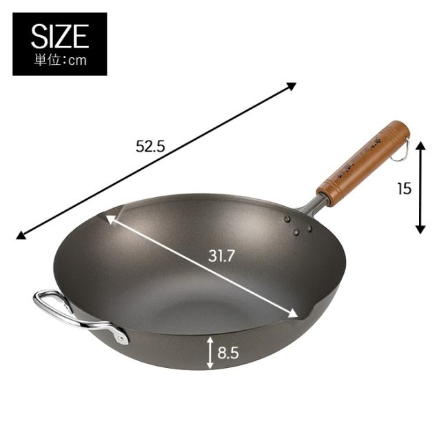 いため鍋 チタン 30cm 両口付き ガスコンロ専用 フライパン 軽い サビに強い 天然木 日本製 燕 家庭用 プロ ギフト 新生活