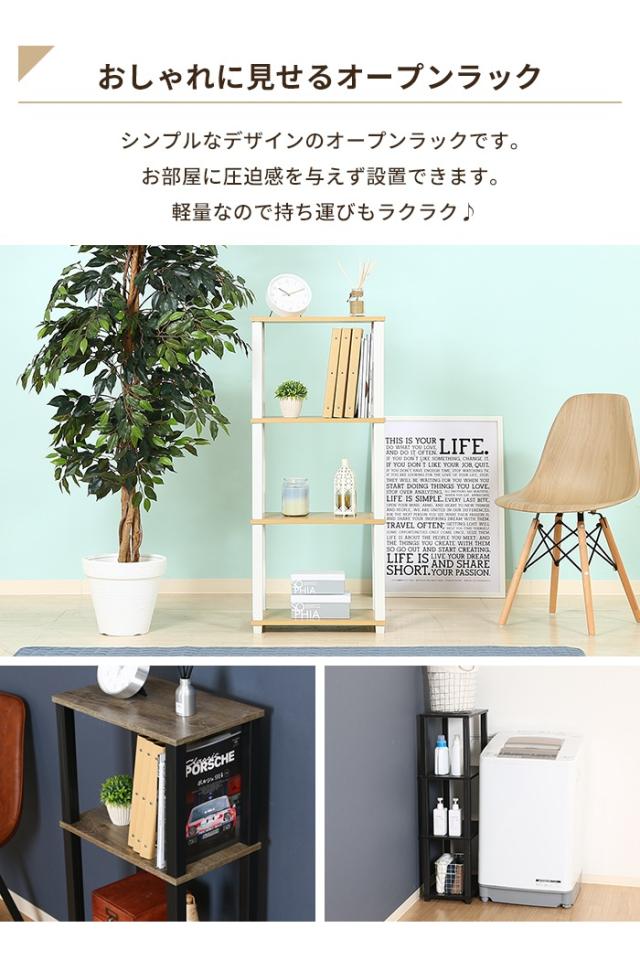 キーワード: オープンラック 4段 ラック 収納棚 幅47 ディスプレイラック フリーラック 本棚 小物収納 シェルフ インテリア 簡単組立 工具不要 おしゃれ シンプル リビング 寝室 ダイニング オフィス 会社